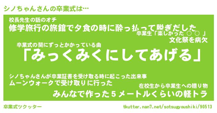 | 胡散臭い通販商品みたいなあだ名 | 『必ず成功するブレスレット…その名も「シノちゃん」』 |
