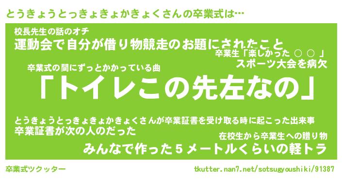 | 胡散臭い通販商品みたいなあだ名 | 『必ず成功するブレスレット…その名も「とうきょうとっきょきょかきょく」』 |
