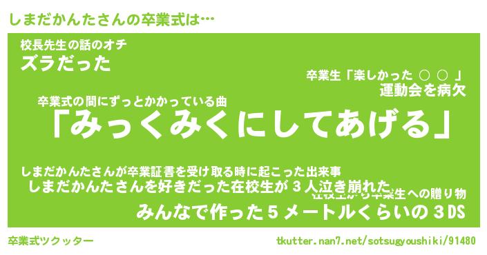| 男性向けラノベタイトル風あだ名 | 『しまだかんたの憂鬱』 |