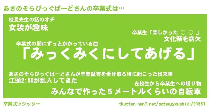| 胡散臭い通販商品みたいなあだ名 | 『必ず成功する霊験あらたかなお札…その名も「あさのそらびっぐばーど」』 |