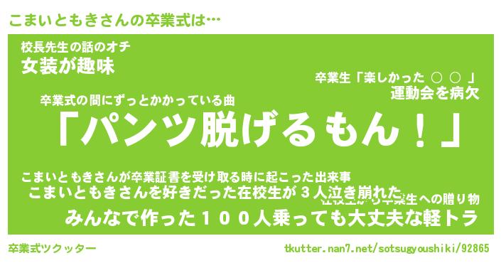 | 伝説のあだ名 | 『不死鳥のスナイパーこまいともき』 |