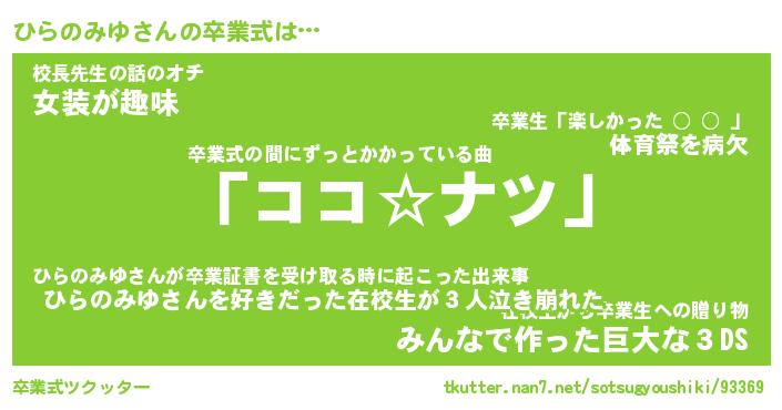 | 伝説のあだ名 | 『不死鳥のスナイパーひらのみゆ』 |