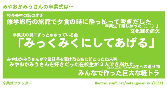 | 胡散臭い通販商品みたいなあだ名 | 『必ず成功する霊験あらたかなお札…その名も「みやおかみう」』 |