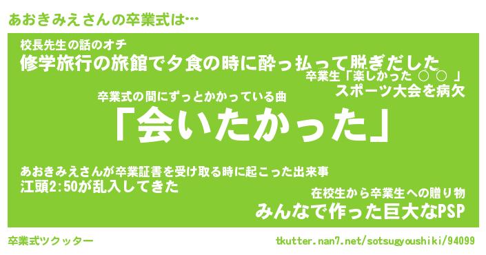 | 伝説のあだ名 | 『不死鳥のスナイパーあおきみえ』 |