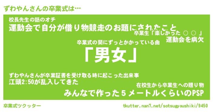 | ヘコむあだ名 | 『ずわにー』『なまこ酢』『ずわ太郎』 |
