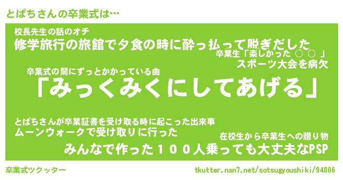 | ヒーロー風カッコイイあだ名 | 『スーパートパチ』『ウルトラとぱちマン』 |
