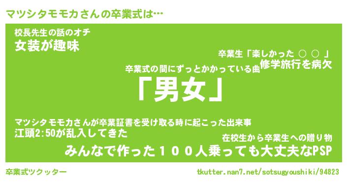| 胡散臭い通販商品みたいなあだ名 | 『必ず成功するブレスレット…その名も「マツシタモモカ」』 |