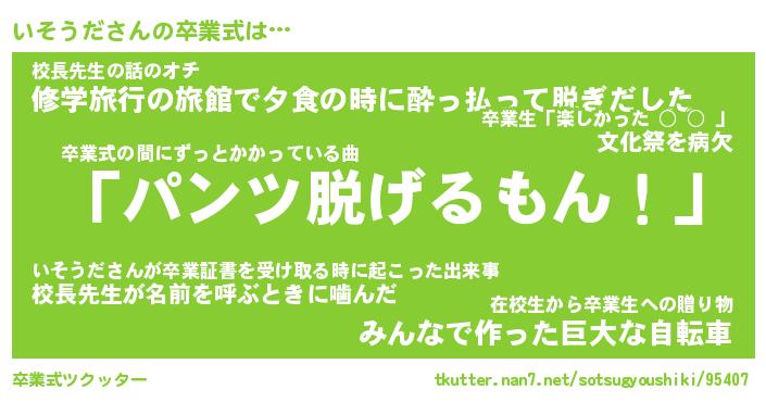 | ピコ太郎風あだ名 | 『イコ一郎』『ピイ八郎』『イソ三郎』 |