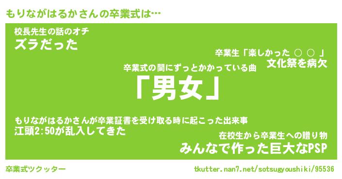 | 男性向けラノベタイトル風あだ名 | 『もりながはるかの憂鬱』 |
