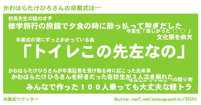 | 男性向けラノベタイトル風あだ名 | 『かわはらたけひろの憂鬱』 |