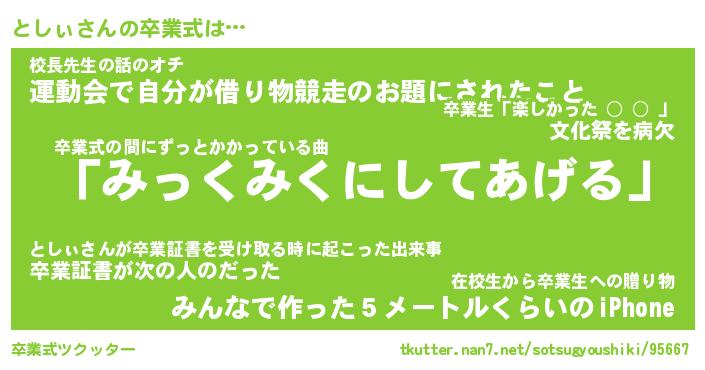 | 胡散臭い通販商品みたいなあだ名 | 『必ず成功するブレスレット…その名も「としぃ」』 |
