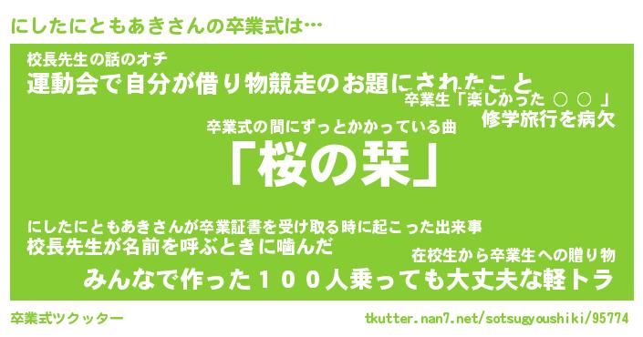 | ヘコむあだ名 | 『にしっふぃ~』『つくし』 |