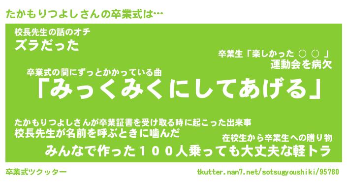 | 胡散臭い通販商品みたいなあだ名 | 『必ず成功する霊験あらたかなお札…その名も「たかもりつよし」』 |