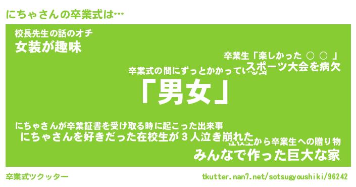 | 男性向けラノベタイトル風あだ名 | 『にちゃの憂鬱』 |