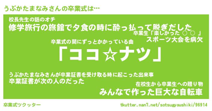 | 伝説のあだ名 | 『不死鳥のスナイパーうぶかたまなみ』 |