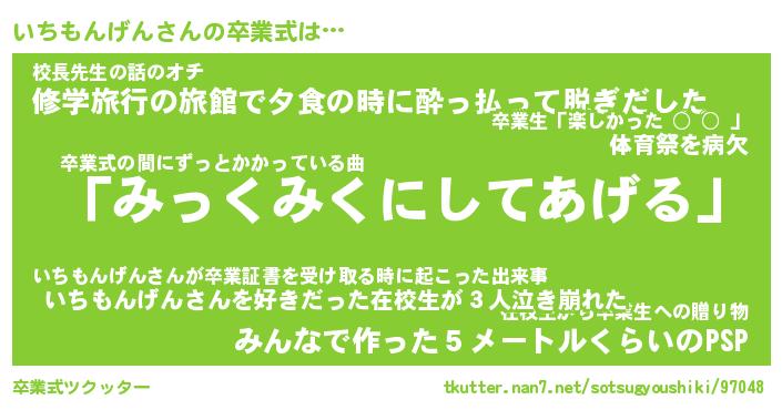 | 胡散臭い通販商品みたいなあだ名 | 『必ず成功するブレスレット…その名も「いちもんげん」』 |