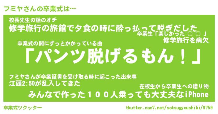 | 意味不明あだ名 | 『ペロリンフミヤ』『フミヤフォーエバー』 |