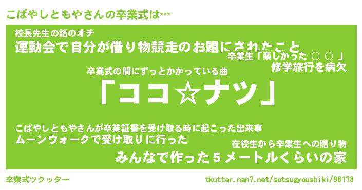 | ヘコむあだ名 | 『こばにゅー』『つくし』『こば太郎』 |