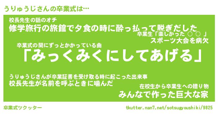 | 伝説のあだ名 | 『伝説のスナイパーうりゅうじ』 |