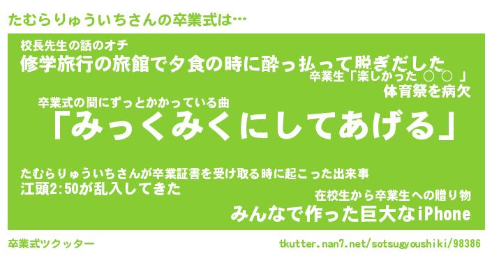 | ヒーロー風カッコイイあだ名 | 『スーパータムラリュウイチ』 |