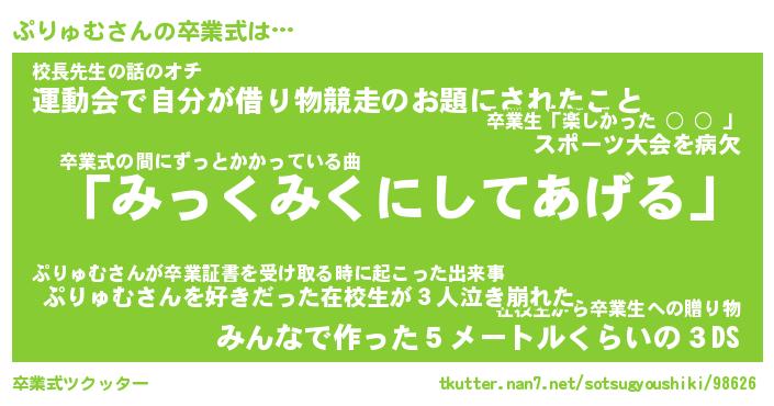 | ヘコむあだ名 | 『ぷりっふぃ~』『つくし』 |