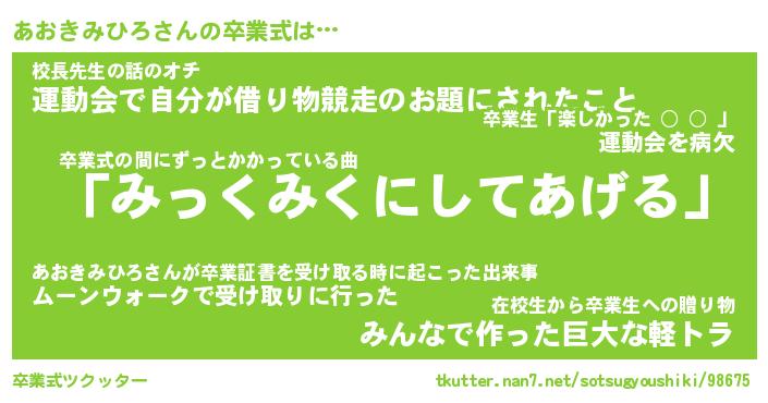 | ヘコむあだ名 | 『あおもー』『つくし』『あおお』 |