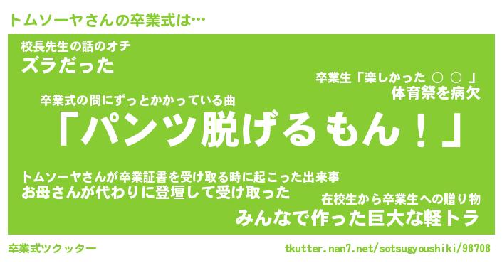 | ヘコむあだ名 | 『トムふぇ~』『なまこ酢』『トムを』 |