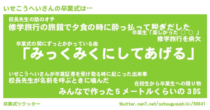 | 胡散臭い通販商品みたいなあだ名 | 『必ず成功するブレスレット…その名も「いせこうへい」』 |