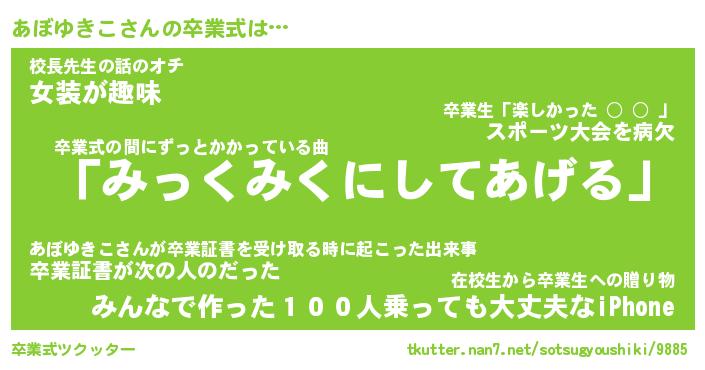 | 伝説のあだ名 | 『伝説のスナイパーあぼゆきこ』 |