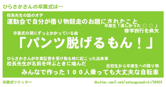 | 意味不明あだ名 | 『ペロリンひらさか』『永久保存ひらさか』 |
