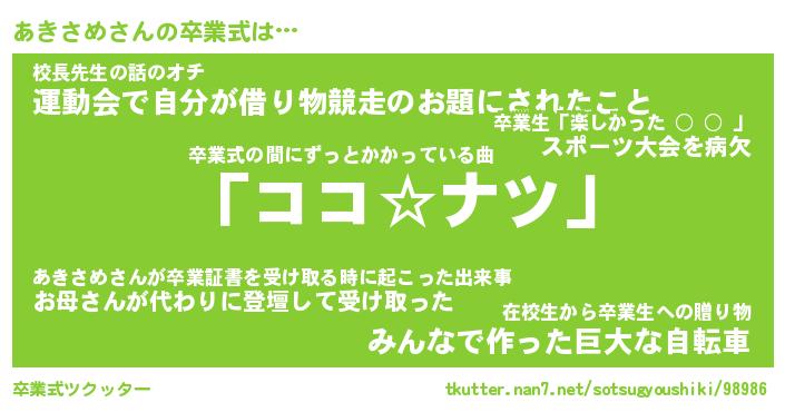 | 2回繰り返すあだ名 | 『あきあき』『ああきき』『ぬめぬめ』 |