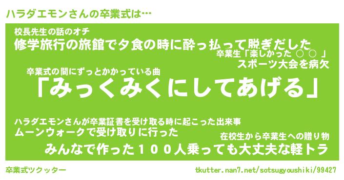 | 胡散臭い通販商品みたいなあだ名 | 『必ず成功する霊験あらたかなお札…その名も「ハラダエモン」』 |