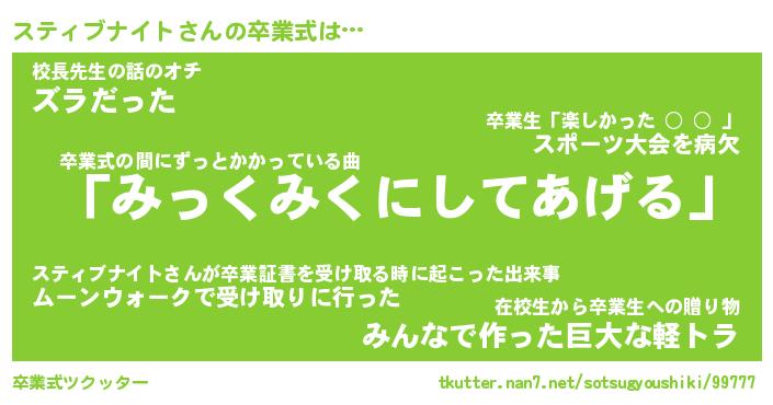 | 胡散臭い通販商品みたいなあだ名 | 『必ず成功する霊験あらたかなお札…その名も「スティブナイト」』 |