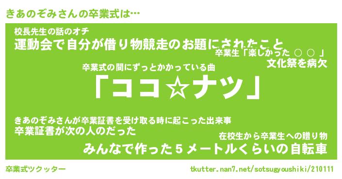 | 男性向けラノベタイトル風あだ名 | 『きあのぞみの憂鬱』 |