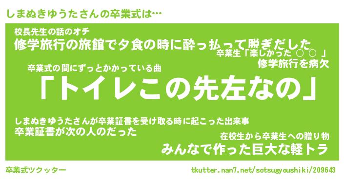 | 伝説のあだ名 | 『伝説のスナイパーしまぬきゆうた』 |