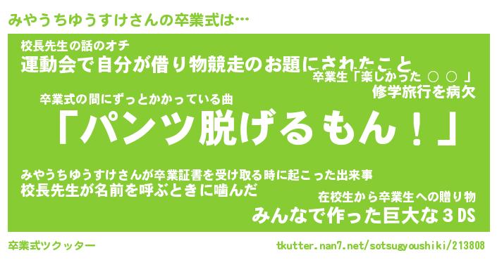 | 伝説のあだ名 | 『不死鳥のスナイパーみやうちゆうすけ』 |