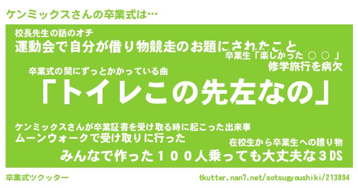 | ヘコむあだ名 | 『ケンふぇ~』『牛乳』『ケンぷりん』 |
