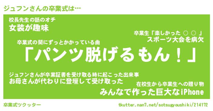 | 意味不明あだ名 | 『ペロリンジュフン』『永久保存ジュフン』 |