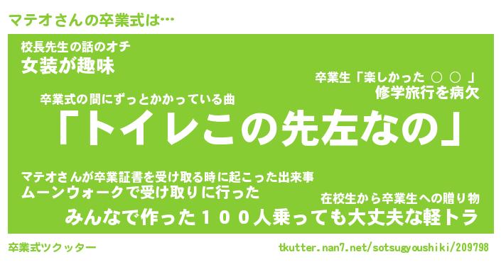 | ピコ太郎風あだ名 | 『マコ二郎』『ピマ史郎』『マテ十郎』 |