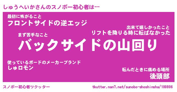 | ヘコむあだ名 | 『しゅっふぃ~』『牛乳』『しゅお』 |