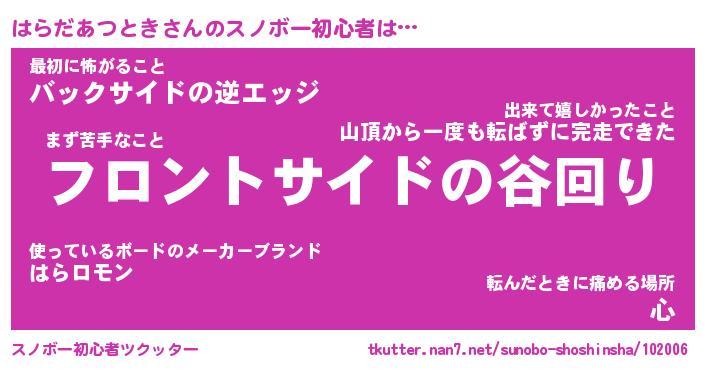 | ヘコむあだ名 | 『はらにー』『豆乳』『はらぷりん』 |