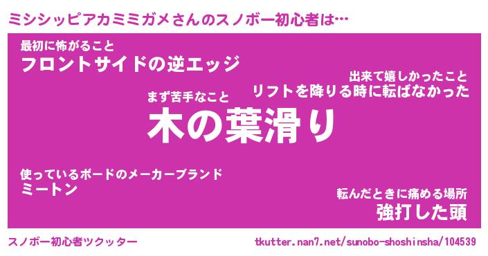 | ヘコむあだ名 | 『ミシっふぃ~』『牛乳』『ミシ太郎』 |