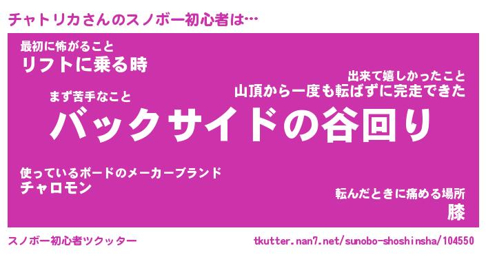 | ヒーロー風カッコイイあだ名 | 『スーパーチャトリカ』『天弓騎士チャ』 |