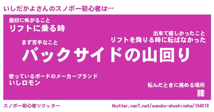 | 男性向けラノベタイトル風あだ名 | 『イシダカヨアートオンライン』 |