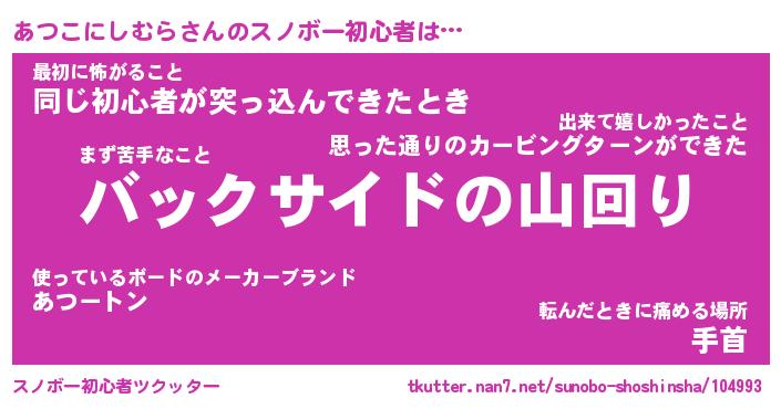 | ヘコむあだ名 | 『あつにー』『豆乳』『あつぷりん』 |