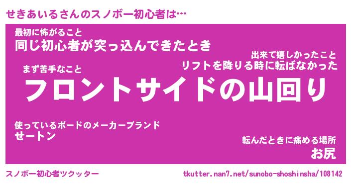 | ヘコむあだ名 | 『せきっふぃ~』『豆乳』『せきを』 |
