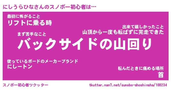 | ヒーロー風カッコイイあだ名 | 『スーパーニシウラヒナ』『銀牙騎士ニシ』 |