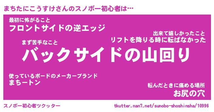 | ツイッター | まちたにこうすけさんのツイッターID『namakemono_kun』 |