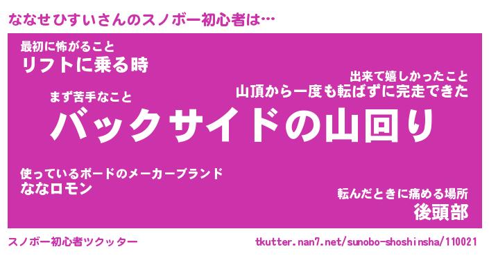 | ヘコむあだ名 | 『ななにゅー』『なまこ酢』『ななを』 |