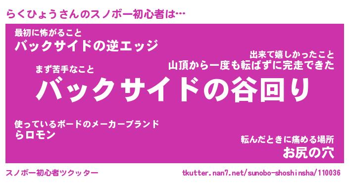 | ツイッター | らくひょうさんのツイッターID『dendenmushi_kun』 |